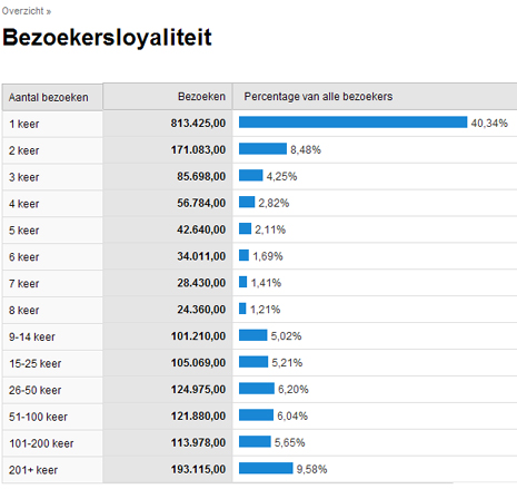 De in totaal 2.016.658 bezoeken waren verantwoordelijk voor maar liefst 11.679.525 paginaweergaves, een duizelingwekkend aantal. Bezoekers van Condoleance.nl blijken ook zeer loyaar. Bijna 10% van de bezoekers heeft Condoleance.nl het afgelopen jaar meer dan 200 keer bezocht!