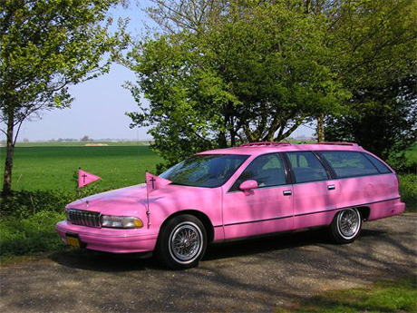 (Stoperaplein, Amsterdam) met een roze rouwauto.