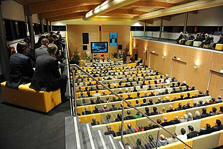 Naast de geheel nieuwe aula, waarin aan ongeveer 350 personen een zitplaats kan worden geboden, is tevens een grotere ontvangsthal gecreëerd.