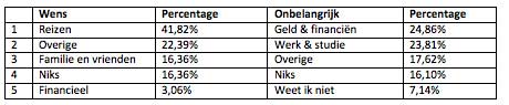 Ongeveer 17% van de respondenten heeft aangegeven graag de laatste tijd met familie en vrienden te willen doorbrengen. “Vooral genieten van de mensen waar ik van hou” is een veel gegeven reactie.