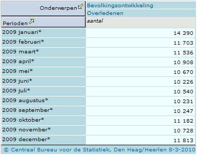 Sterftecijfers Nederland 2009
